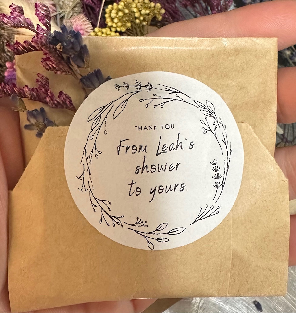Small Organic Soap wrapped with dried flowers and brown paper.